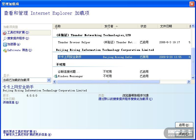 再说楼主都已经把它禁用,并且卡卡上网安全助手也已经卸载了,这个加载项不删也没什么的。