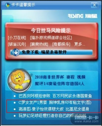 官方的说法,卡卡助手的弹窗是挂马风险提示,但是请注意