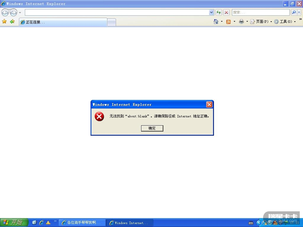 今天下午用卡卡上网助手修复IE后,结果IE就打不开了,一打开会弹出这个东西