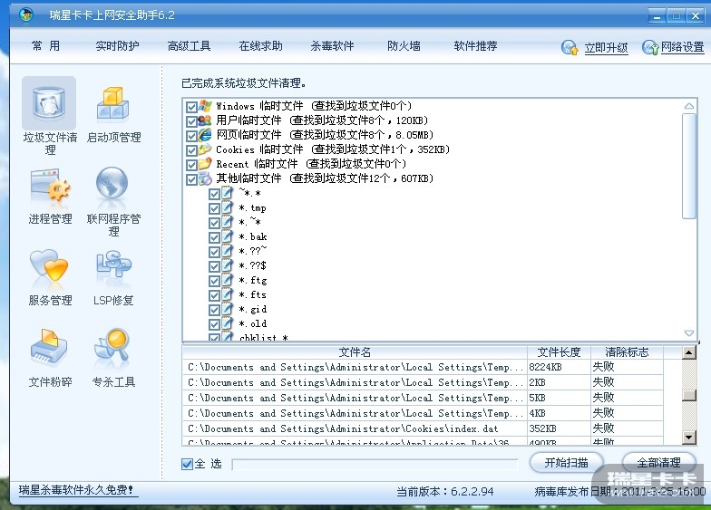 我用瑞星卡卡清理垃圾,为什么有些垃圾清理成功,有些清理不成功呀