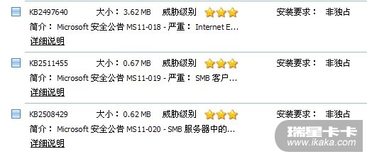 4.请查看控制面板/添加删除程序中是否有这些补丁