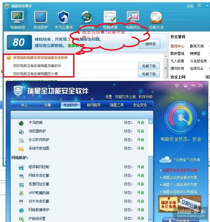 请您将瑞星全功能安全软件升级至最新版本,再用助手扫描试试