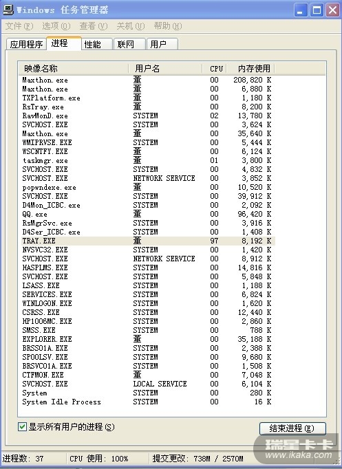 1)强制结束tray.exe进程后,从资源管理器进入瑞星安装目录,将RSA目录下的tray.exe改名