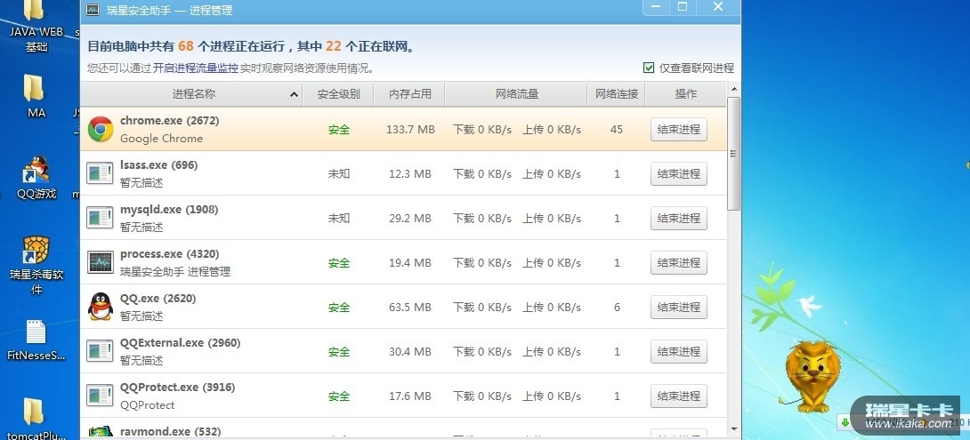 没有上网进程弹出,点击“开启进程流量监控”没有反应