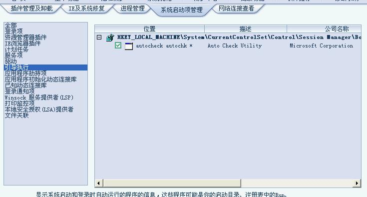 此分支下比较少发现可疑文件,若此项呈红色显示,则代表危险!