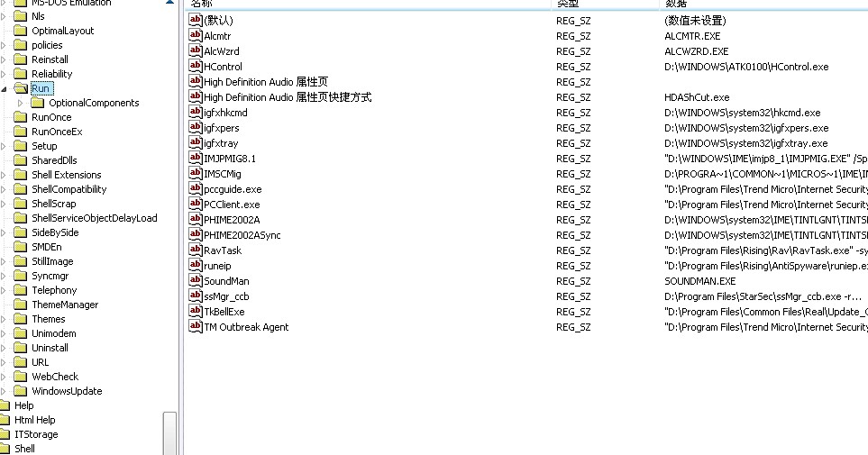 一般卡卡里面显示的没有什么问题就不怕,也可能注册表里面的那些没有被加载吧,你可以把注册表项保存出来提交给高手分析看看