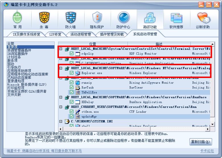 昨晚我使用卡卡启动项清理,随手禁用了两个不熟悉的启动项,结果电脑进系统首先需要点击用户名(以前不用的),然后看到桌面.可是桌面上什么都没有,只有鼠标移动,按键盘任何按键都没有反应.请问这样需要怎么解决? 我试过F8也没有用的.