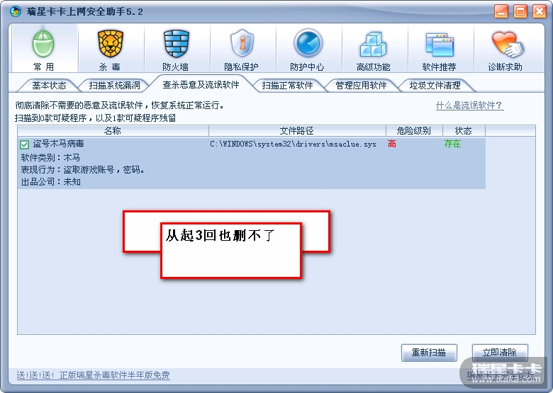 和我的一样,可瑞星没本事杀,找都找不到还杀锤子!快点解决才是硬道理.