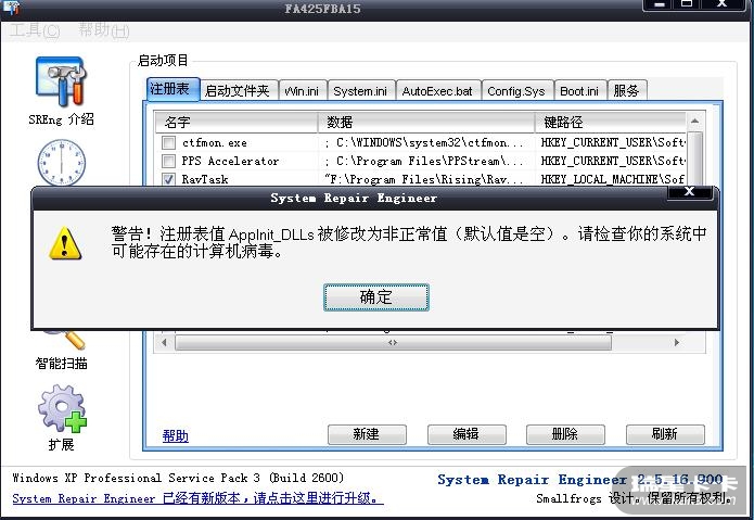 kmon.dll是卡卡助手正常文件,只是applnit_dlls键值默认情况下是空值,且易被病毒利用,所以有些安全软件发现applnit_dlls键值非空时就会有警告提示。