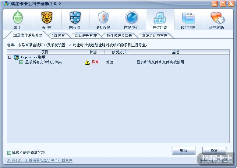 反复点击修复,刷新后仍显示异常!手动在文件夹选项修复了所指出的异常情况后,再扫描仍然显示异常?是什么原因引起的?如何修复此问题?请明白的告诉我?谢谢!