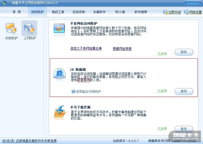 瑞星个人防火墙2009公测