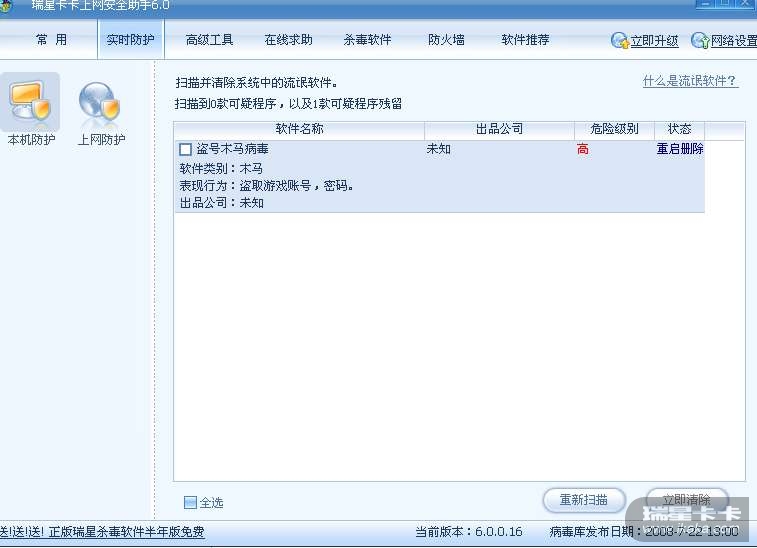 瑞星个人防火墙V16