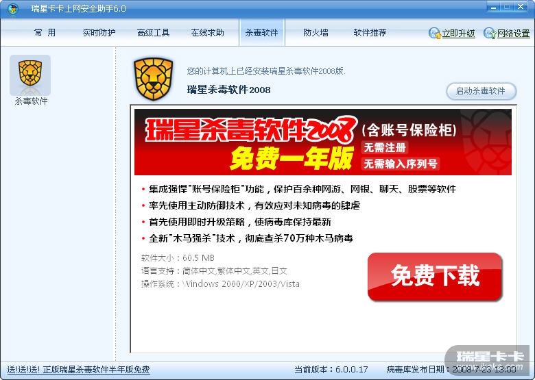 瑞星杀毒软件2009公测