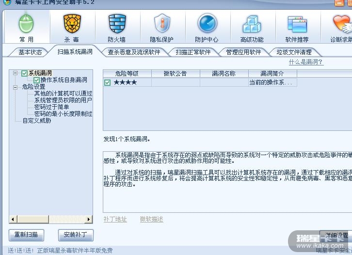 卡卡上网助手-实时防护-本机防护-自动修复系统漏洞