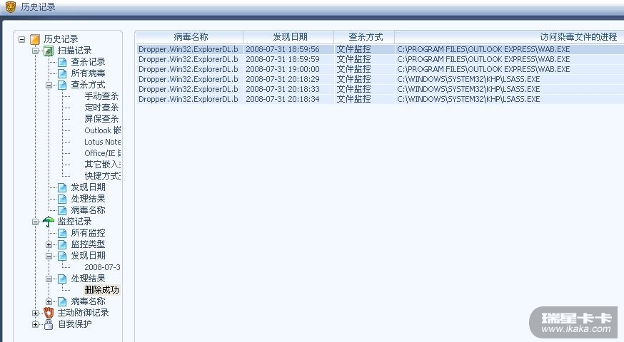 我的卡卡应该是被病毒删除了~我一直在用瑞星杀毒软件,今天晚上上来瑞星就不断报毒,然后就发现卡没有正常启动,手动启动卡卡发现的程序已经没有了~好象是被病毒删除了一样~~重新下载原包后也安装不了~~~想请教高手~~我该怎样处理~~~