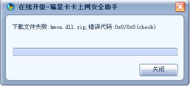 卡卡6.0升级的时候每次都出现“下载文件失败:kmon.dll.zip,错误代码:0x0/0x0(check)”的问题!