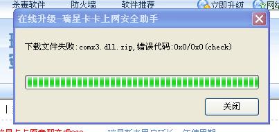可以获得升级信息,但当下载到文件comx3.dll.zip时失败,错误代码:0x0/0x0(check)