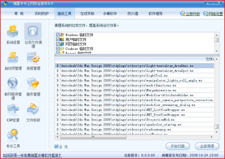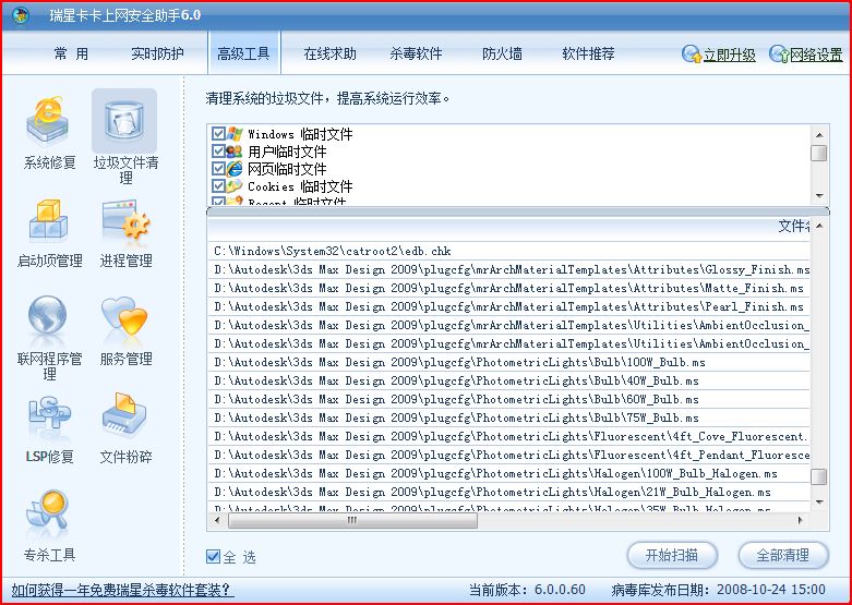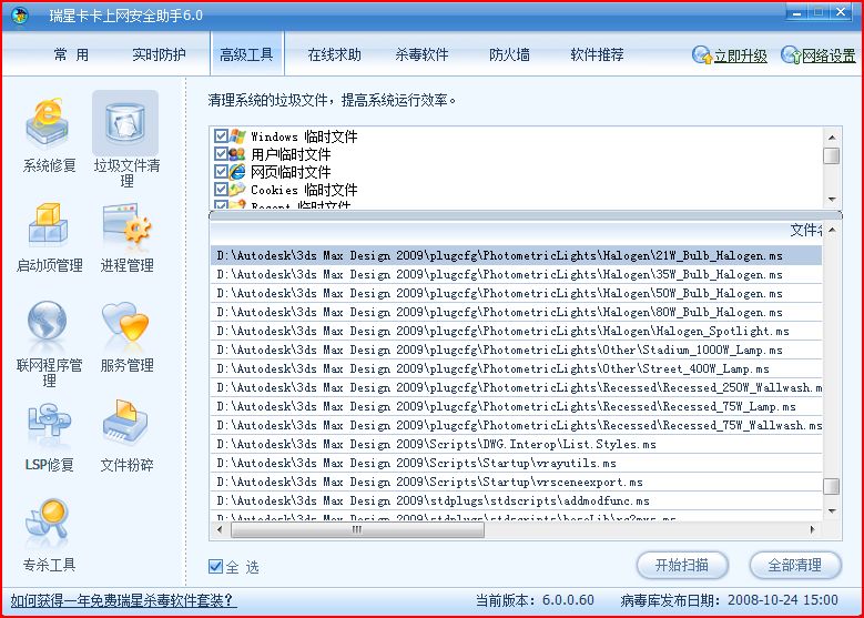 从上图可以看出它清理了我3ds Max Design 2009目录下所有的.ms文件,这些文件到底应不应该清理?说实话我现在还不知道这类型的文件是什么文件做什么用。但是在系统盘却没有清理出这样的文件,只有在3ds Max目录下才有。依此可以推断3ds Max 6 以上的版本只要用了卡卡6.0的垃圾文件清理的话都会有同样的遭遇,从上面图3可以看出。