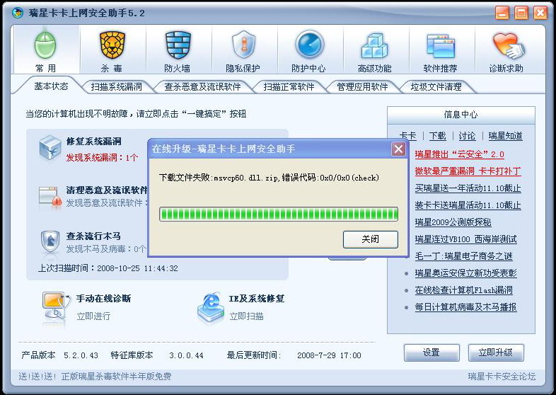 每次下载都遇到: 下载文件失败:msvcp60.dll.zip,错误代码:0x0/0x0(check)
