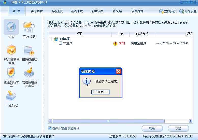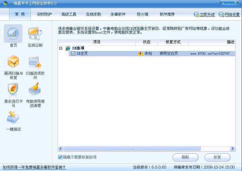 怎么也弄不掉这个主页,安全模式下修复也试过了还是无效,目前只能用卡卡暂时将其屏蔽,请帮帮忙