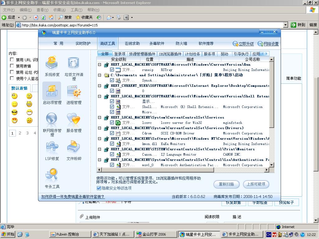 点开之后,全是注册表项的,我是网吧一名网管,也要搞半天才能明白哪些是要正常启动的,哪些不用开机启动的。 看起来普通用户是根本没办法区别哪些是什么东西,要不要启动的。