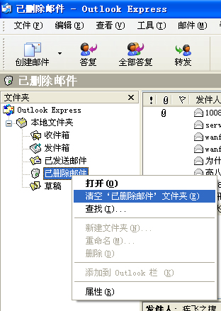 OK,我们再来清空已删除邮件文件夹,如图