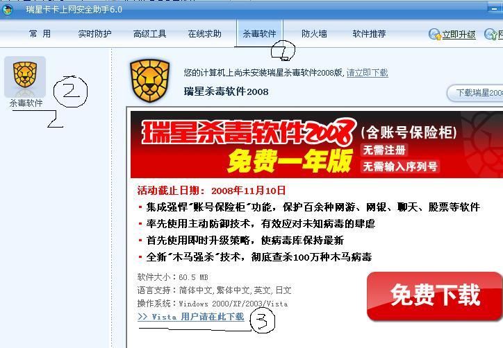 我的瑞星杀毒软件和防火墙是下载版的,今天刚到期,请问现在装卡卡免费送一年的活动,假如我装了卡卡之后怎样才能享受使用,好像以前瑞星页面有介绍过,但我当时不注意看,请各位能具体说说步骤吗?太感谢了,或者给出当时页面的连接也可以,感激万分!!