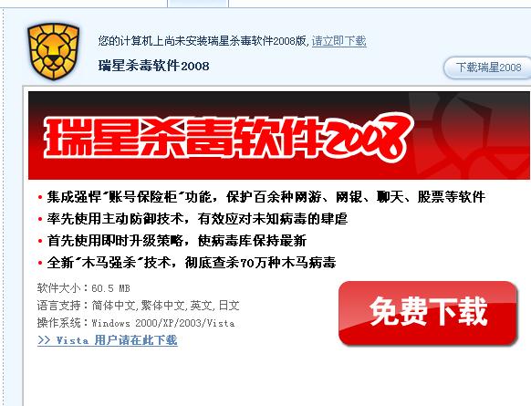 http://topic.pcpop.com/topic3/TopicWeb/285.aspx 这个是连接地址,我自己在官网下载的卡卡,下载瑞星杀毒软件跟防火墙要花钱的啊
