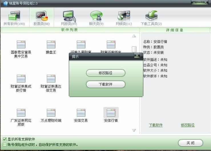 帐号保险柜版本已经更新了啊~~LZ是软件是不是还没有升级的啊?将你的瑞星的软件升级一下,看看