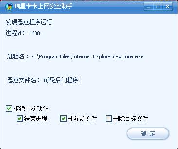 回复:卡卡发现恶意程序运行