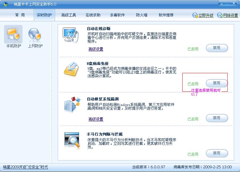 禁用U盘免疫功能就可以