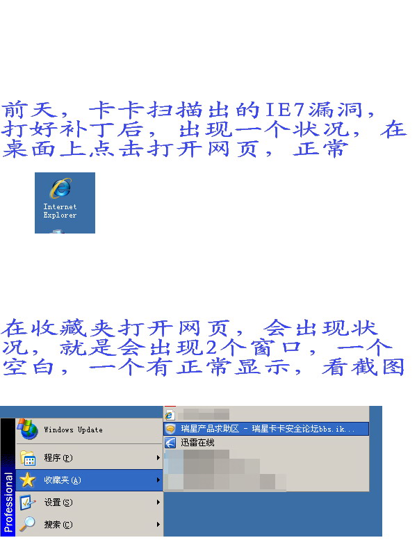 前天卡卡扫描出的 IE 漏洞,打好补丁后 IE 出了状况 ,请指教