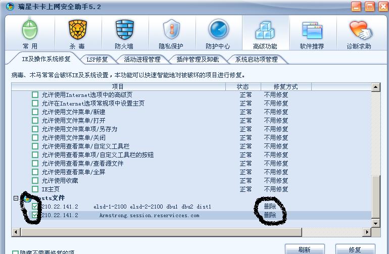这是系统的hosts文件呀,那个删除是指修复方式,lz要是点击修复这两条记录就被删除了。