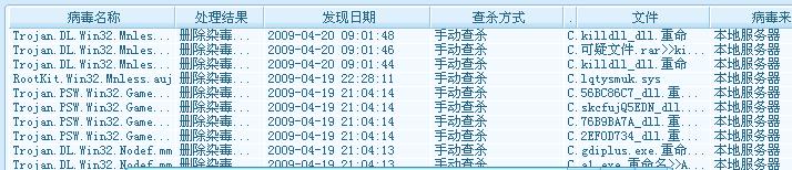 这些是那些重命名之前的DLL经过扫描后的情况(建议是杀毒软件能杀的就让他杀掉,如果病毒是新的杀不掉的,建议上报给杀毒软件,为其他的人们作点贡献吧,让他们不再中类似的病毒):