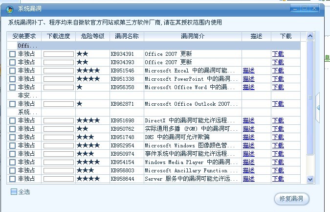 我有16个。每次开机都提示有16个漏洞,要修复吗?点修复了,下次开机又出来了,晕啊