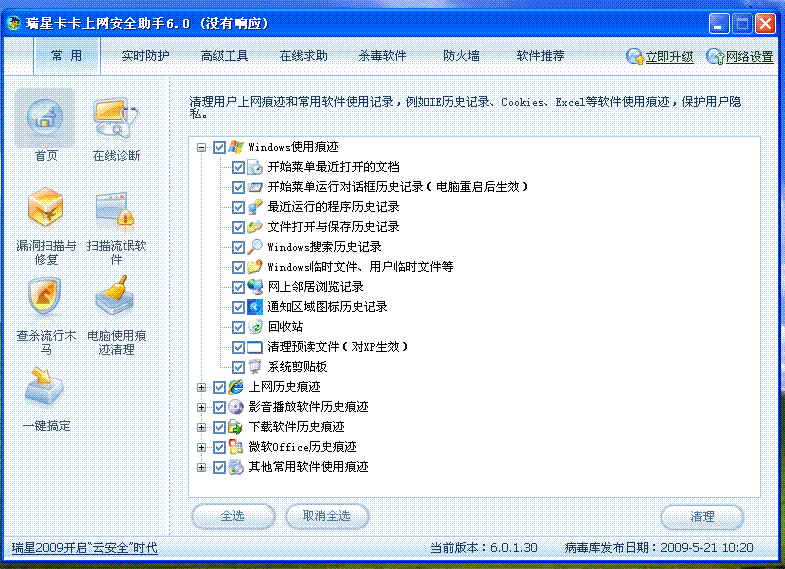 [求助] "清理电脑使用痕迹"选择全选时造成鼠标成漏斗状卡卡无反应!