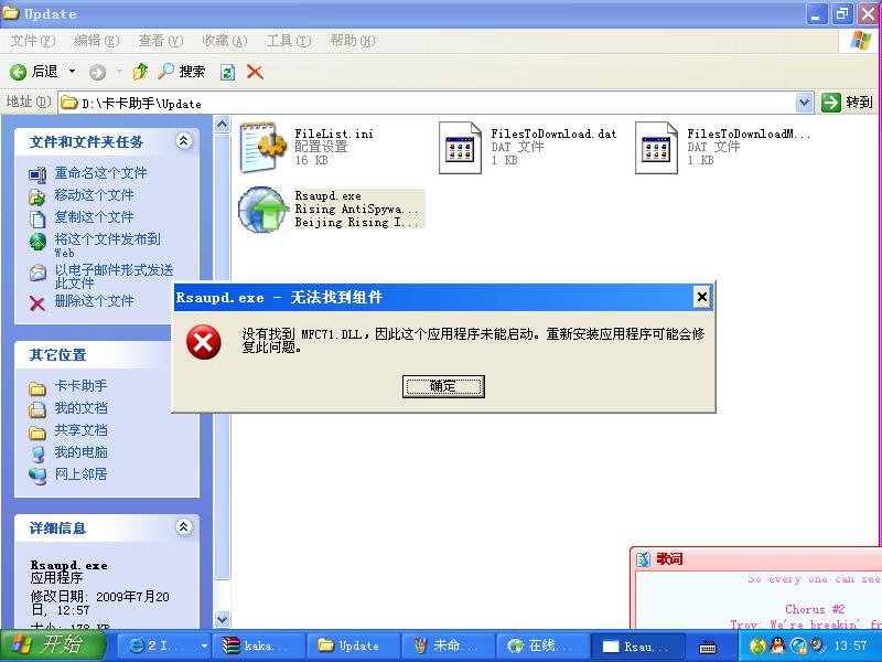 阿福的做法可能会使得:卡卡卸载的时候卸载不干净,因为mfc71.dll是我们后来复制进system32的,所以卸载程序不会删除它
