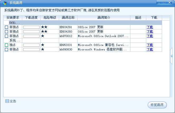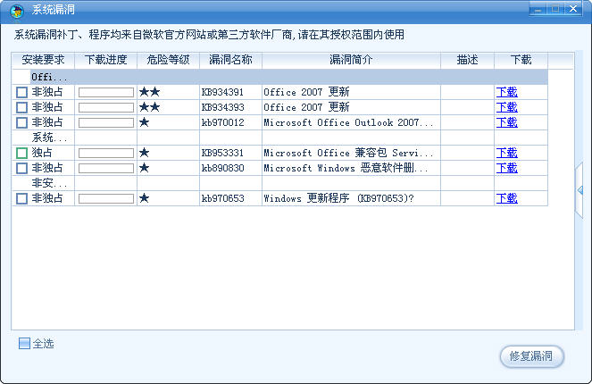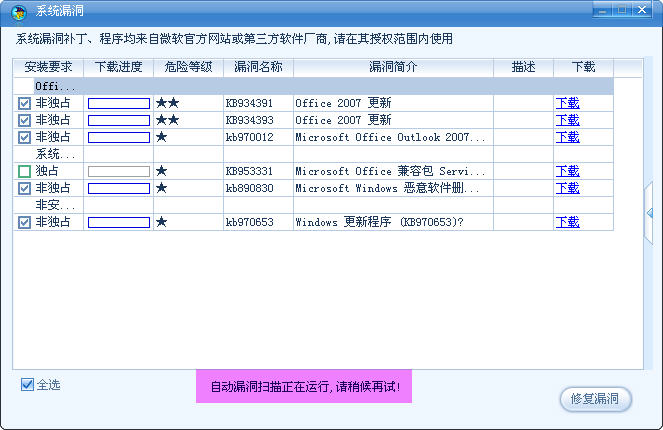 全选,点修复漏洞。提示自动漏洞扫描正在进行。。。