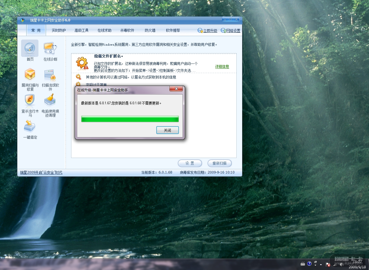 晕了,卡卡也好像有点问题了,说俺不用升级,安装的版本比瑞星数据库里的还新!!!