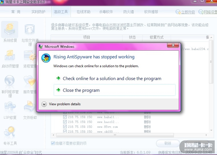 点下面的修复键之后 ,卡卡就自己死了,不能用啊