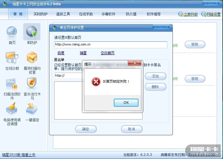 回复: 在使用卡卡6.2首页锁定时,显示首页锁定失败。