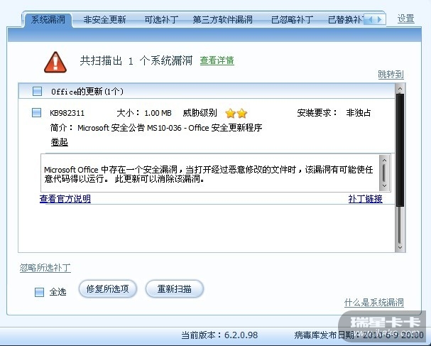 你这么回答,以前都装的好好的,现在一个精简版彻底否决掉,我我虽然可以忽略掉这个补丁,但是对卡卡的检测实在是太失望了!!这绝对是卡卡的问题,这么明显的对比,用windowsupdate检测不出来,卡卡倒是能检测出来