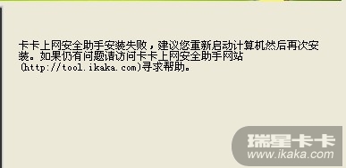 今天把电脑还原了一下,重装软件时,卡卡助手安装不上,一开始都正常,到了下一步安装的时候,显示为: