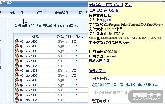 卡卡的联网程序管理 出现这样的链接。。谁知道这是什么进程。。怎么结束