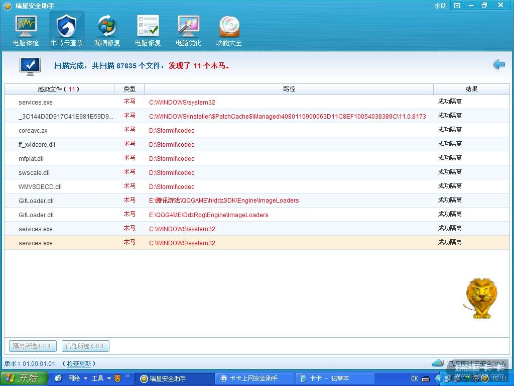 [求助] 卡卡助手木马云查杀发现木马,瑞星没杀出毒,另附了查杀的图.
