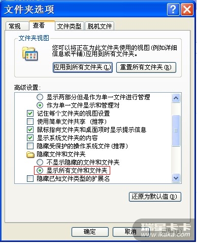我的电脑——工具——文件夹选项——查看,可以显示隐藏文件