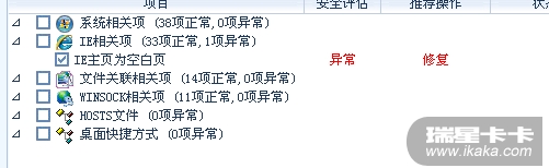 使用卡卡上网安全助手系统修复中的“强力恢复ie”后,鼠标右击桌面的ie图标少了删除。(点的是自定义修复)之前已经设瑞星网址导航为主页了,但是还显示