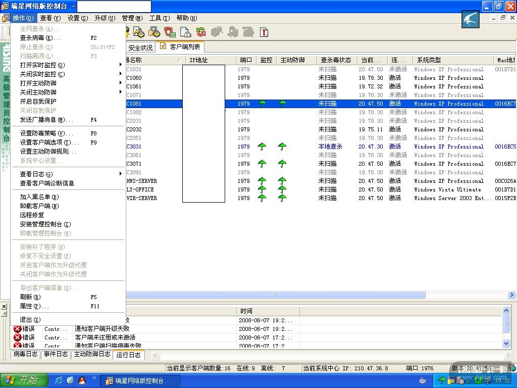 单位的瑞星网络版升级后不知道为什么漏洞扫