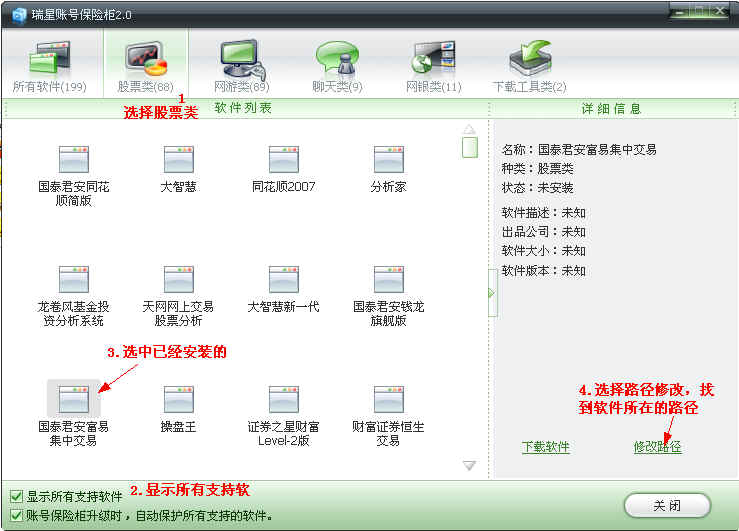 已安装的国泰君安富易证券交易软件如何被帐号保险柜保护?谢谢!