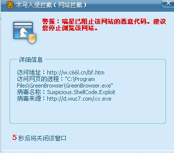 我的瑞星今天开始,每打开一个网页都会弹出以下提示
